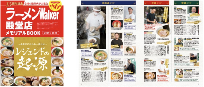 15周年特別企画では、これまでのラーメンWalkerグランプリにおいて殿堂店の称号を獲得した、全国86の名店を総覧できるメモリアルブックを収録。北海道から九州まで、各エリアを代表する店主が大切にしている信念やリスペクトする一杯を熱く語るインタビューのほか、レジェンド店主の生年月日や出身地、職人歴など、ラーメンファン垂涎のマニアックな情報も掲載した保存版です。