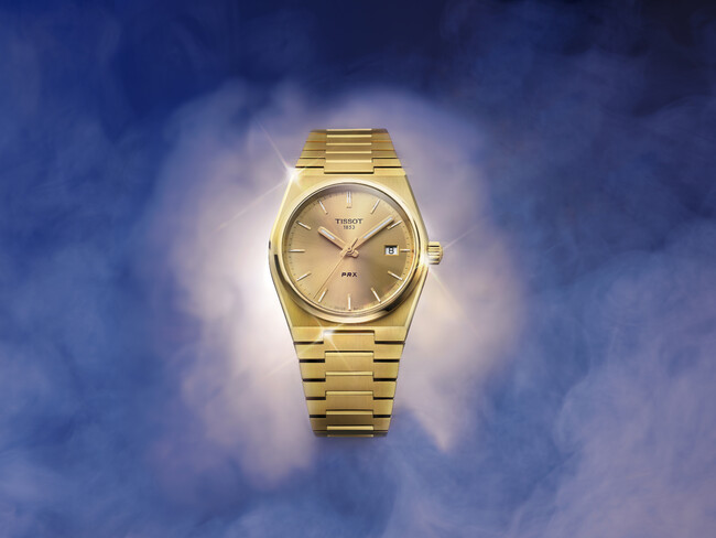 2021年に発売されたPRXは、40mmのケースにクォーツまたはオートマティックムーブメントを搭載していました。今年新たにブルー、グリーン、ライトブルー、シルバーのサンレイダイアルを備えた35mmモデルがラインナップに加わり、今回はケースとダイアルがイエローゴールド PVD コーティングのモデルが登場。デザインは1978年のPRXオリジナルモデルと昨年のモデルを受け継ぎ、ポリッシュ仕上げの薄型ベゼル、ブラッシングされたケースの側面、上下に向かって先細るメタルブレスレッドは健在です。ムーブメントはスイス製クォーツ。PRXはいつでも、モダンなヴィンテージ クラシックがテーマです。