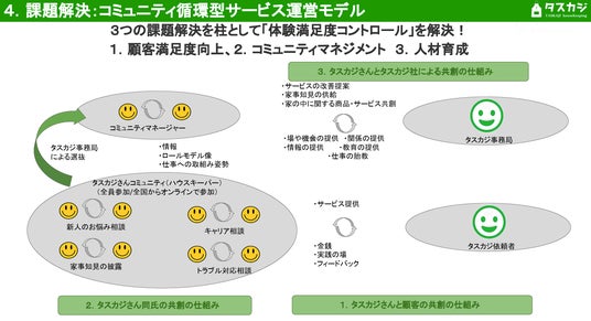 単なる顧客満足の向上に留まらず、サービス提供者の自立と成長を支える仕組みが“依頼者とタスカジさん・タスカジとの好循環”を生んでいると評しました。