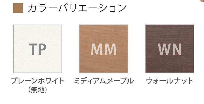 カラーは全3色プレーンホワイト(TP)、ミディアムメープル(MM)、ウォールナット(WN)の3色をご用意しております。