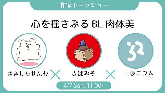 BL作品の醍醐味のひとつとして「肉体美」をあげられる方も多いのではないでしょうか。本公演では、魅力的な肉体を描かれる作家にお集まりいただき、筋肉の美しさ、描写のこだわりについてそれぞれの視点から語っていただきます。ライブドローイングも必見です。