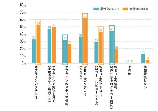 ■男性は情報の正確性や公式性を重視、女性は人からのクチコミやSNSなどを重視