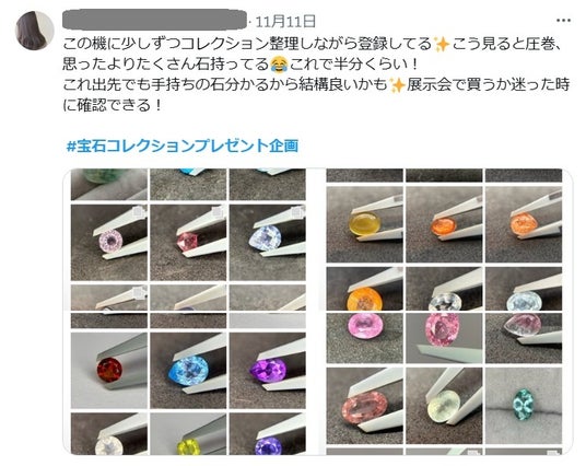 #宝石コレクションプレゼント企画 のハッシュタグをつけて、Xにポスト(投稿)。