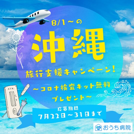 - 株式会社アナムネ(本社:東京都中央区、代表取締役CEO:菅原 康之、以下「アナムネ」)は、夏の旅行シーズンに突入し、コロナ第11波にて現地医療機関での感染者報告数が1医療機関当たり28・57人*と急激に増加している沖縄の医療現場を支援するため、沖縄への旅行者に向け、コロナ抗原検査キットを配布し、オンライン診療を活用することで、現地の貴重な医療資源を支えつつ、スピーディな受診とおくすりの処方による体調回復に役立てる啓発活動として、コロナ検査キットのプレゼントキャンペーンを実施します。*厚生労働省の速報値(2024年7月8日~7月14日)を参照。同期間での東京都の1医療機関あたり感染者報告数7.56人と比較して約3.8倍となっている。*参照)新型コロナウイルス感染症に関する報道発表資料(発生状況)2024年https://www.mhlw.go.jp/stf/seisakunitsuite/bunya/0000121431_00461.html