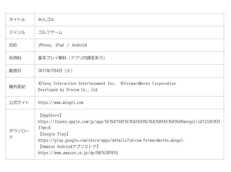 『みんゴル』は、「プレイステーション」を代表する作品の1つ「みんなのGOLF」(以下みんGOL)シリーズのスマートフォン向けゲームアプリケーションです。同シリーズは、世界シリーズ累計実売本数が1,400万本(※1)超え、国内では国民的ゴルフゲームとしてご好評いただいています。