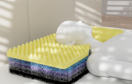 半世紀以上前に床ずれ防止マットレスとして開発され、以降医療の分野で高い評価を受けてきました。独自の凹凸構造は圧力を分散、軽減し「点で支える」のが特長。ロケットの先端の特殊な形状をヒントに誕生しました。面ではなく点で支え、理想的な寝姿勢を保てるのが特長です。ムアツは今後も進化を続け、より快適な睡眠環境をサポートし続けます。