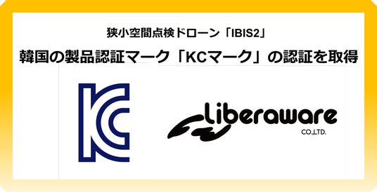 株式会社Liberaware(本社:千葉県千葉市、代表取締役 閔 弘圭、以下「当社」)は、自社で開発する狭小空間点検ドローン「IBIS2」が、韓国の製品認証マークである「KCマーク(Korea Certification Mark)」の認証を9月30日付で取得したことをお知らせします。今回の認証取得を契機に、韓国のインフラ・プラント市場にも当社のソリューションを展開し、ミッションである「誰もが安全な社会を作る」ことの実現に向けて邁進していきます。