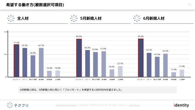 2ヶ月連続で、新規人材のうち80%以上が「フルリモート」を希望しています。