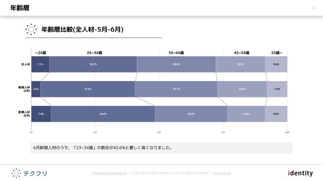 6月新規人材のうち、「23~34歳」の割合が40.6%と著しく高くなりました。