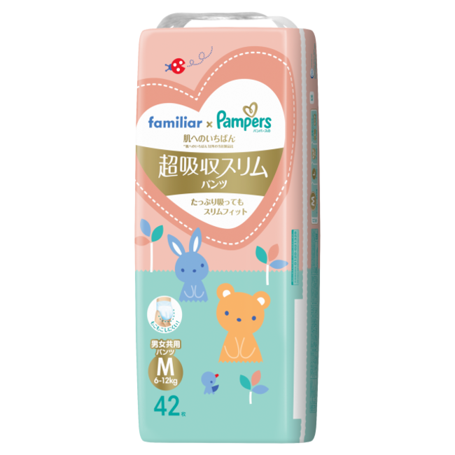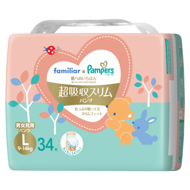 「パンパース ファミリア特別デザイン 肌へのいちばん* 超吸収スリムパンツ」