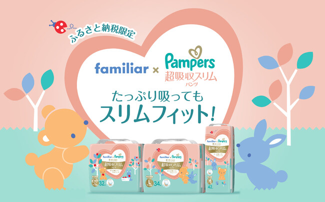 本プロジェクトの一環として、2022年3月に登場した「パンパースの肌へのいちばん* 超吸収スリムパンツ」から、ファミリアによる動物たちをモチーフにした可愛らしい特別デザイン商品が神戸市のふるさと納税返礼品として登場し、同日より、神戸市のふるさと納税返礼品取扱いサイトにて予約受付を開始いたします。