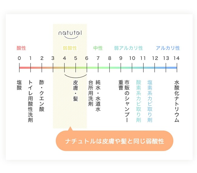natutolのカビ取り成分は自然由来の発酵乳酸を使用し、素肌と同じ弱酸性。