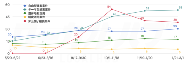 ことが見て取れます。初めのうちは、自由提案案件を多めに掲載をしていたのですが、企業との連携自体があまり進まないことがわかってきました。その理由としては、明確にわかっており、
