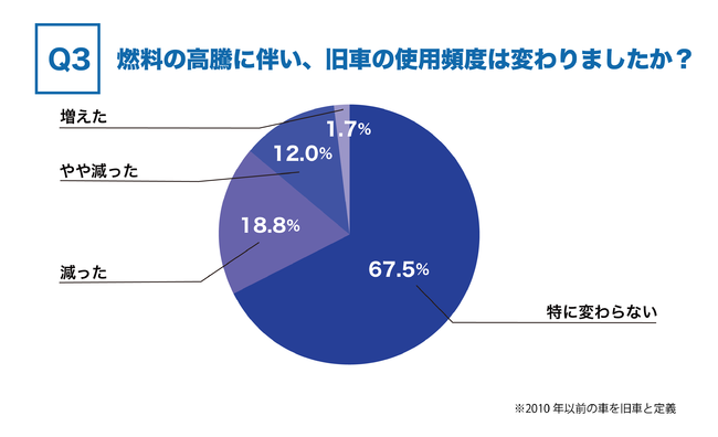 Q3.燃料の高騰に伴い、旧車の使用頻度は変わりましたか?※2010年以前の車を旧車と定義