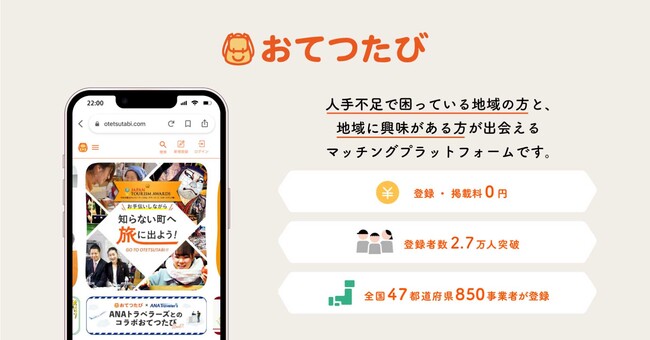 一方おてつたびは、関係人口の創出に強みを持ち、これまで多くの自治体と連携して、地域貢献の意欲にあふれた都市圏の人々と担い手不足に悩む地域の事業者を結び付けることで、担い手不足の解消に貢献してきた実績があります。この度、長浜市とおてつたびが連携し、関係人口の創出によるシェアリングエコノミーの活用推進を図ることで、地域外から長浜市内に多数の人が訪れ、市内事業者の人手不足を解消しながら関係人口が継続的に創出される仕組みづくりを進めていきます。