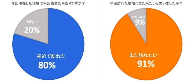 「日本各地にある本当にいい人、いいもの、いい地域がしっかり評価される世界を創る」というビジョンを掲げ、2018年7月にサービスをスタートしました。利用者数は2万6000人を超え、受け入れ先は全国47都道府県 850事業者に拡大。おてつたび終了後のアンケート※1では、参加者の8割は、それまで全く行ったことない地域を訪れ、9割以上が「地域にまた訪れたい」と答え、移住・定住した事例もあり関係人口創出※2を強みとしております。