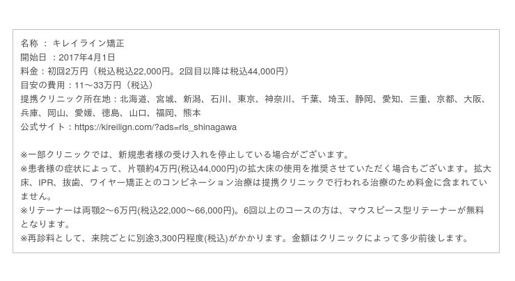 「2万円(税込22,000円)から始められる」とSNSの口コミでも話題の『キレイライン矯正』(所在地:東京都文京区、代表取締役:高木健作)は、『コレクトデンタルクリニック 渋谷』(東京都渋谷区)にて、キレイライン矯正ならびにキレイラインKIDSの提供を開始いたします。2021年12月1日(水)より予約受付を開始しております。