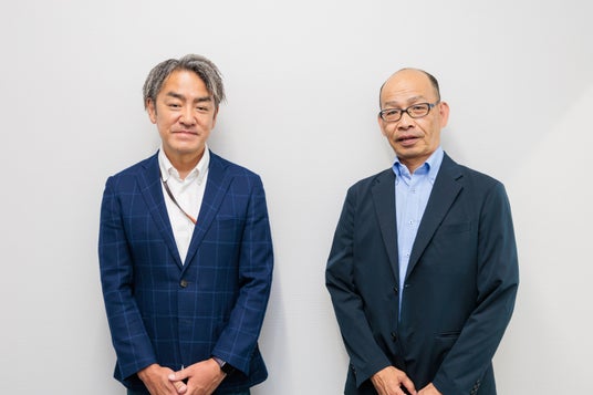 左:ケアフォート株式会社 代表取締役社長 春山泰三 様、右:株式会社スミロン 環境・安全衛生推進室 室長 兼 ライフケア事業部製品開発部 マネージャー 津村武洋 様(撮影: 安藤貴弘)