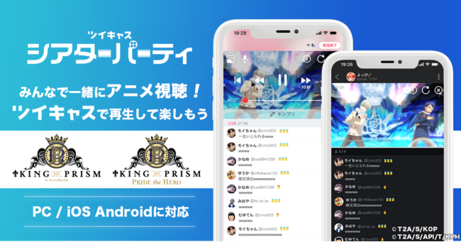 モイ株式会社(本社:東京都千代田区 代表:赤松 洋介)は、同社が運営するライブ配信プラットフォーム「ツイキャス」にて、2022年2月26日(土)21時より劇場版「KING OF PRISM by PrettyRhythm」劇場版「KING OF PRISM -PRIDE the HERO-」を2本連続で放送することをお知らせいたします。