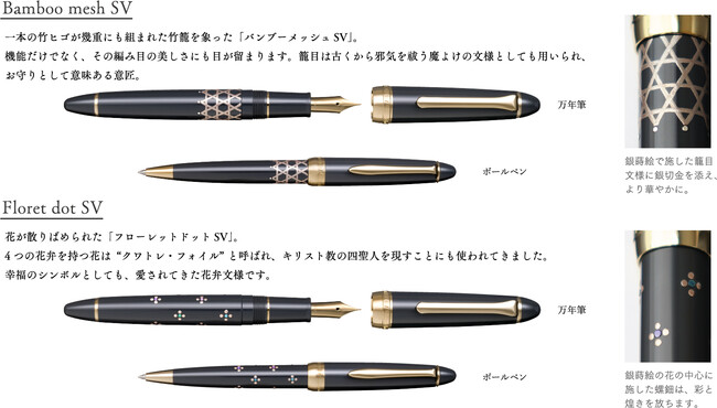 品名:Classic Ko 蒔絵文房万年筆 バンブーメッシュSV /フローレット ドット SV