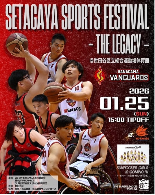 2026年1月25日(日)には、世田谷区立総合運動場体育館にて、今シーズン最後のホームゲームである神奈川VANGUARDS対NO EXCUSE戦が開催されます。