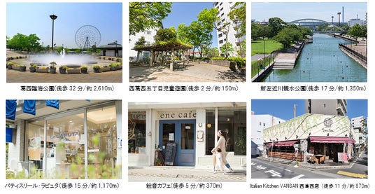 本物件は、東京メトロ東西線「大手町」駅へ直通16分、日本橋駅や銀座駅などの都心各所へスムーズにアクセスできる都心近接立地でありながら、大小さまざまな公園が身近にあり、緑豊かな住環境が広がっています。徒歩圏内には、飲食店やクリニック、保育園などが揃う駅高架下のショッピングセンター「メトロセンター西葛西」をはじめ、スーパーやドラッグストアなど、大小様々な商業施設が充実しています。