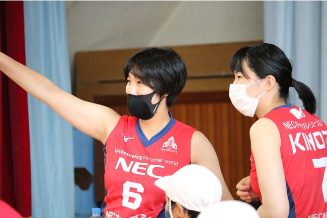 栗木台小学校では上野香織選手と甲萌香選手、下作延小学校では川上雛菜選手と吉田あゆみ選手が先生役として参加し、授業を行わせていただきました。