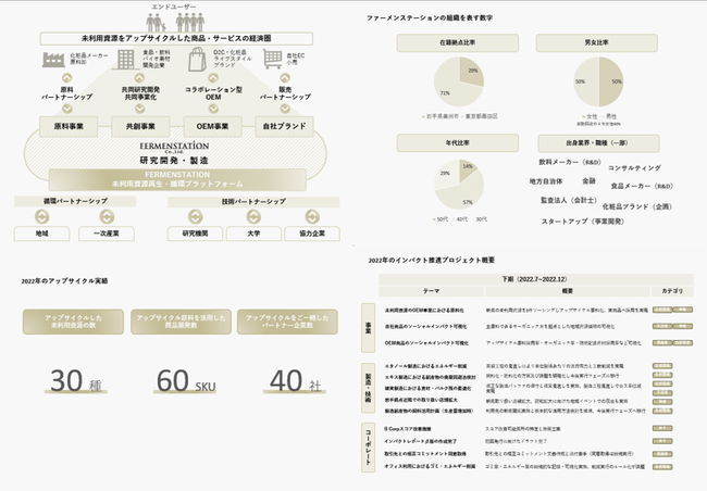 独自の発酵技術で未利用資源を再生・循環させる社会を構築する研究開発型スタートアップの株式会社ファーメンステーション(本社:東京都、代表取締役:酒井 里奈)は、同社初となるインパクトレポートを公開しました。ファーメンステーションは創業以来、事業性と社会性の両立を目指し、その両面でポジティブなインパクトの創出を追求してまいりましたが、レポート公開にあたり独自のインパクトモデルを整理し、2022年の事業活動を振り返りレポートにまとめました。