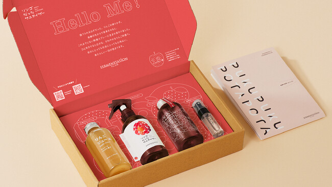 「リンゴだったサニタイザー」本体に加えて、詰替用ボトル、携帯用スプレー、りんごジュース、ファーメンステーションの取組みを紹介する循環BOOKを付けたプレミアムセットをご用意しました。除菌スプレーとして商品を使うだけでなく、ファーメンステーションが大切にしている「循環の楽しさ」を感じていただけるセットになっています。