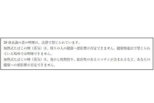 BATグループでは、たばこ製品のマーケティングを適切に実施するために国際的な自主規準を設定しています。そのため消費者に対するたばこ製品に関するすべてのコミュニケーションには、20歳未満の方へのコミュニケーションをお控えいただくとともに、「喫煙と健康に関する注意文言」を表示することを関係各位にお願いしております。加熱式たばこに関しては、記事掲載していただく際には、「健康に関する注意文言」が表示されるようご配慮いただきたく存じます。ご協力の程、何卒よろしくお願い申し上げます。