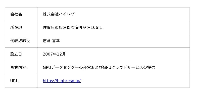 ハイレゾは、生成AIの学習や推論の演算で使用されるGPU専用データセンターを自社運営し、高性能な計算リソースをクラウドで提供するスタートアップ 企業です。廃校などの遊休施設をデータセンターとして再活用することで地方創生 という社会課題の解決に貢献するとともに、高性能GPUクラウドサービス「GPUSOROBAN」の提供を通じて国内におけるGPUインフラ整備を推進しています。