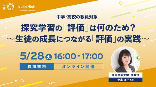 「世界とつながる探究的な学びを手軽に教室で」をコンセプトとしたEdTech教材を提供する株式会社Inspire High(本社:東京都千代田区、代表:杉浦太一)は、探究学習の「評価」をテーマにした中高教員向けのオンラインセミナーを5/28(火)に開催します。