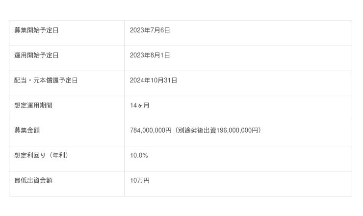 第二期以降のファンドも、想定年利・運用期間等は44号と同様の条件にて組成する予定です。