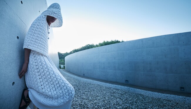 ウェアとその空気感を高める自然光に包まれながら、通りを歩いたり、海岸に立ったり、野原に座ったり、現代建築や伝統建築に寄りかかったりするなど、それぞれの被写体を単独で写しています。日本ははっきりと感じられますが、調和を追求する中で、それはヒントや暗示、痕跡にすぎず、共同体としての意識、環境との調和が全体に貫かれています。流れるようなジェスチャー、ウェアの色や質感は周囲のものと自然に調和しています。人類は自然の中に自らの居場所を見つけ、ウェアやアクセサリーによって相互のつながりを意識します。絵画的で緻密な写真からは、喜び、温かさ、平和の感覚がにじみ出ています。