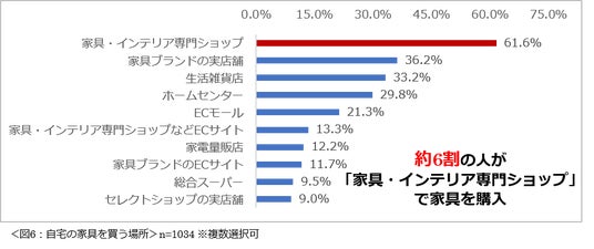 家具を買う場所は「家具・インテリア専門ショップ」という人が約6割。