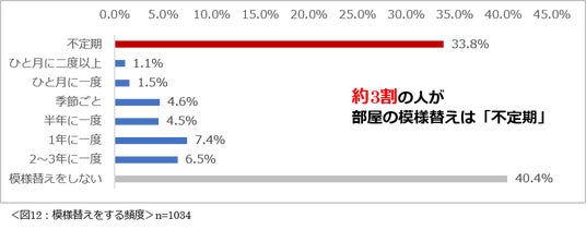 「どれくらいの頻度で模様替えをしますか?」と尋ねたところ、約3割の人が「不定期」と回答しました。(図12)