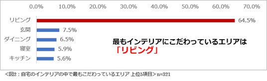 自宅の中で最もインテリアにこだわっているエリア 1 位は「リビング」。