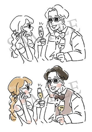 この他にも、ユーモア溢れるふたりの顔イラストや、おしゃれな足もとイラストなど全4種ございます。