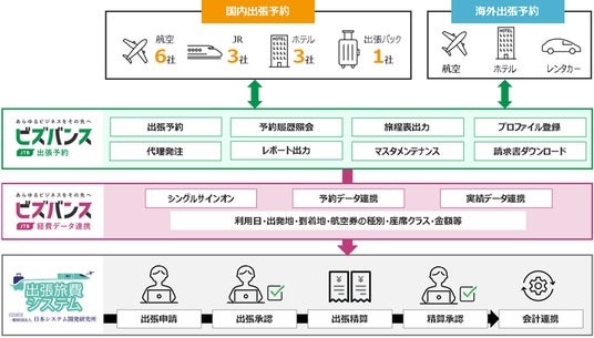 JTBグループで経費データ連携プラットフォーム『ビズバンスJTB経費データ連携』を提供する株式会社JTBビジネストラベルソリューションズ(本社:東京都江東区、代表取締役社長執行役員:原田 雅裕/以下JTB-CWT)は、一般財団法人日本システム開発研究所(本社:東京都新宿区、代表理事:桜内 文城/以下日本システム開発研究所)が提供する『出張旅費システムWEB版』とのシステム間のデータ連携を開始いたしました。