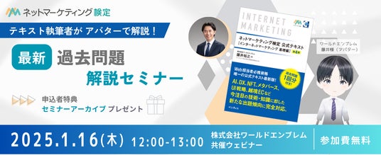 株式会社サーティファイ(本社:東京都中央区、代表取締役:瀧澤茂)は、株式会社ワールドエンブレムと共催した「ネットマーケティング検定 最新 過去問題解説」のオンラインセミナーを2025年1月