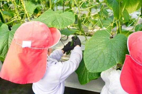 最先端研究農場で大収穫!年長園児43名がきゅうり104kg超を収穫、学びと驚きにあふれた食育体験