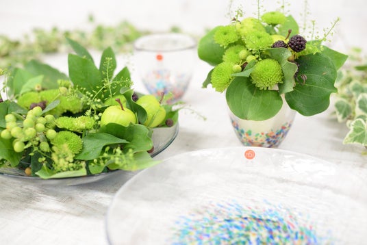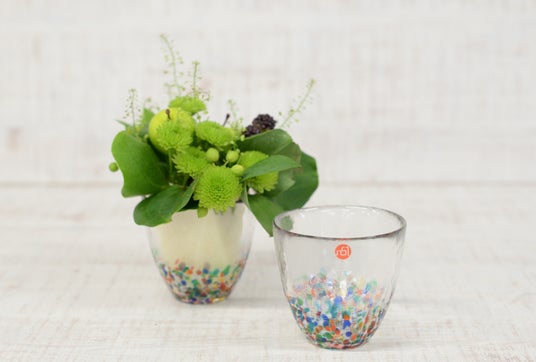 ワークショップで使用する津軽びいどろの器と生花はお土産にプレゼント!津軽びいどろ×日比谷花壇のコラボレーション企画。