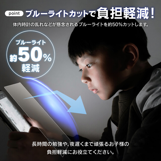 体内時計の乱れなどが懸念されるブルーライトを約50%カットします。