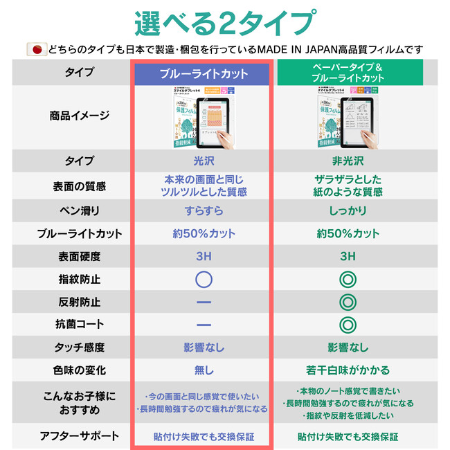 スマイルタブレット4 【ブルーライトカット】保護フィルムの特徴