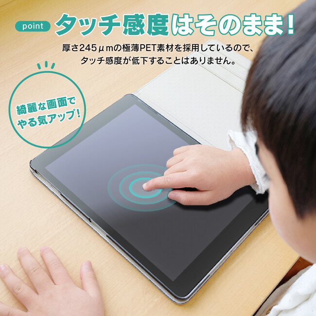 厚さ245μmの極薄PET素材を採用しているので、タッチ感度が低下することはありません。