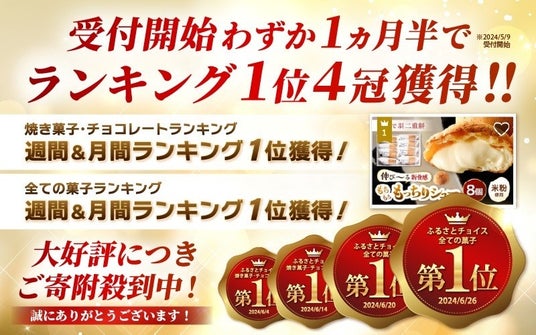 福井県坂井市のふるさと納税返礼品として、令和6年5月9日より受付を開始した『羽二重もっちりシュー』について、7月29日時点で、主要ポータルサイトのランキング1位を総なめし、11冠を達成しました。