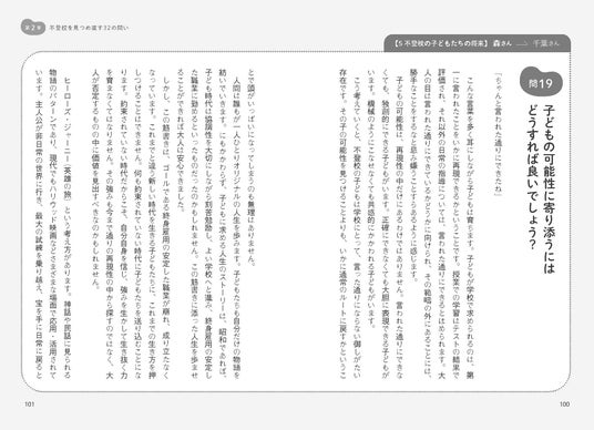 もっと温かさを/今まで大丈夫だったのに……/子どもの命を守るために/誰かに会いに行きたくなるように/私がフィットする場所はあるか/靴に足を合わせることはできない/特異な才能をもつ子どもたちは宝/世の中を嫌いにならないように