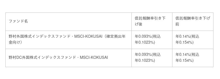 野村アセットマネジメント株式会社(CEO兼代表取締役社長:小池広靖、以下「当社」)は、以下の確定拠出年金(DC)専用の2ファンド(以下「対象ファンド」)について、信託報酬率を引き下げました。