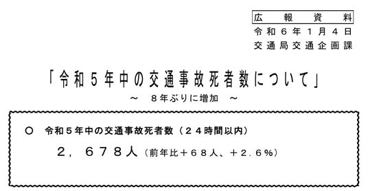 令和5年の交通事故死者数が2,678人と、8年ぶりに増加に転じました。この現状は、より効果的な安全対策の必要性を示しています。