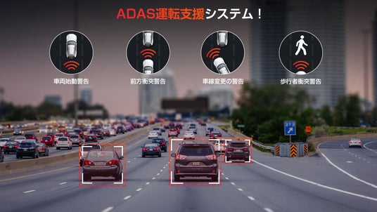 「もしも」の事故を防ぎ、「いつも」安心の運転サポート。運転者に未来の安心体験を。前後AI検知機能(ADAS+BSD)であなたの目になるドライブレコーダー。